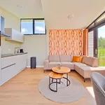 Mikrovågsugn och te-/kaffebryggare finns i köket på boendet.